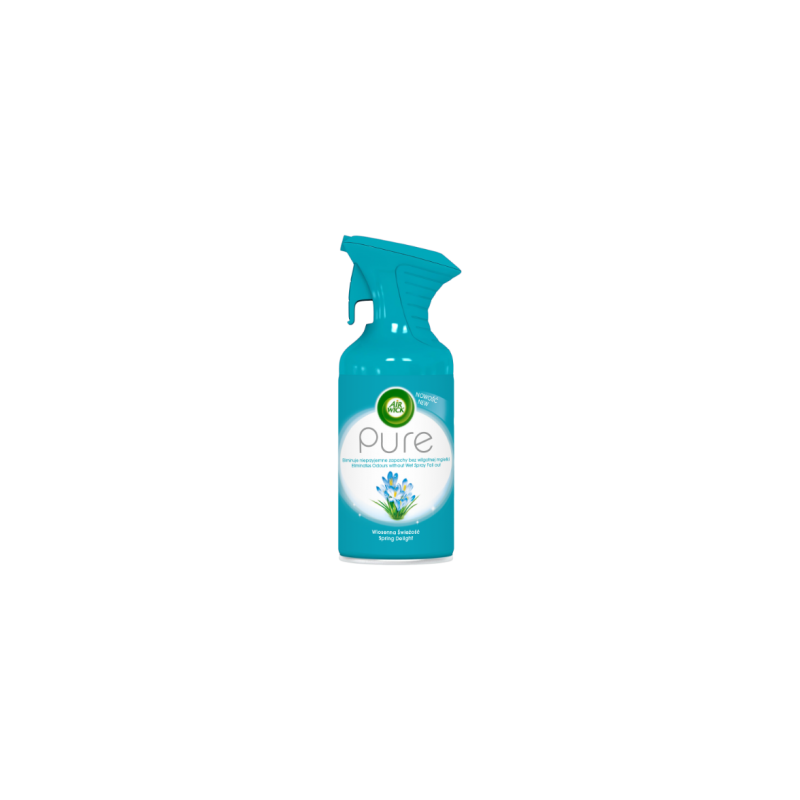 AIR WICK PURE pavasariškos gaivos kvapo. Sudėtyje nėra pridėtinio vandens. Jis neutralizuoja nemalonius kvapus, nesudaro drėgnos dulksnos ir namuose paskleidžia nuostabiai gaivų aromatą.