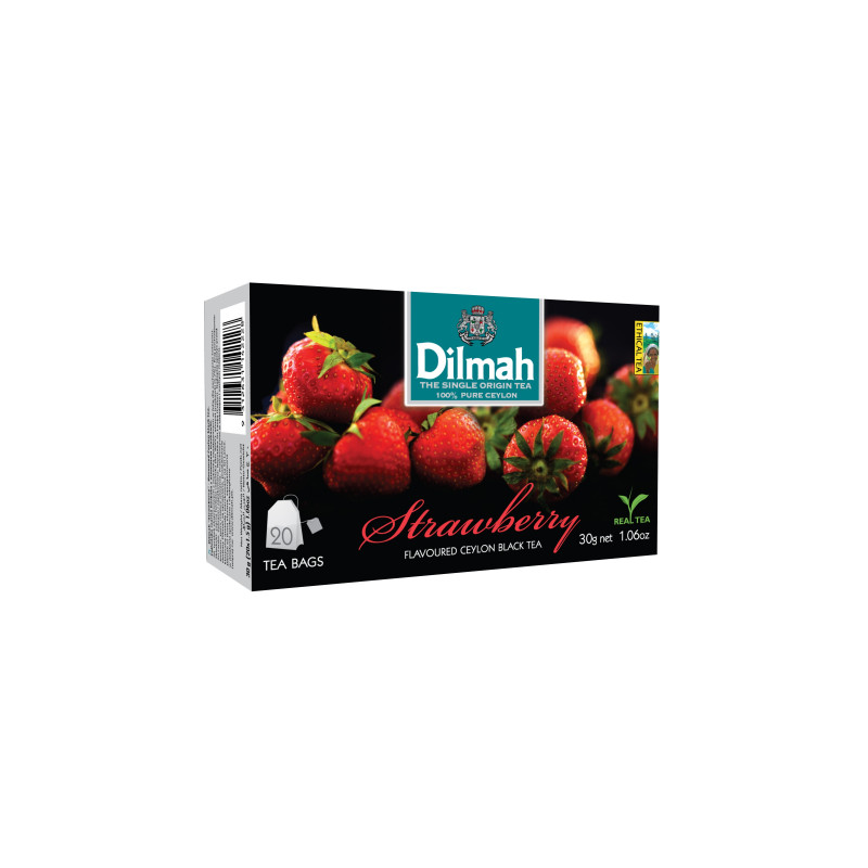 SUDEDAMOSIOS DALYS: juodoji Ceilono arbata, braškių kvapo kvapioji medžiaga (6,0proc.).