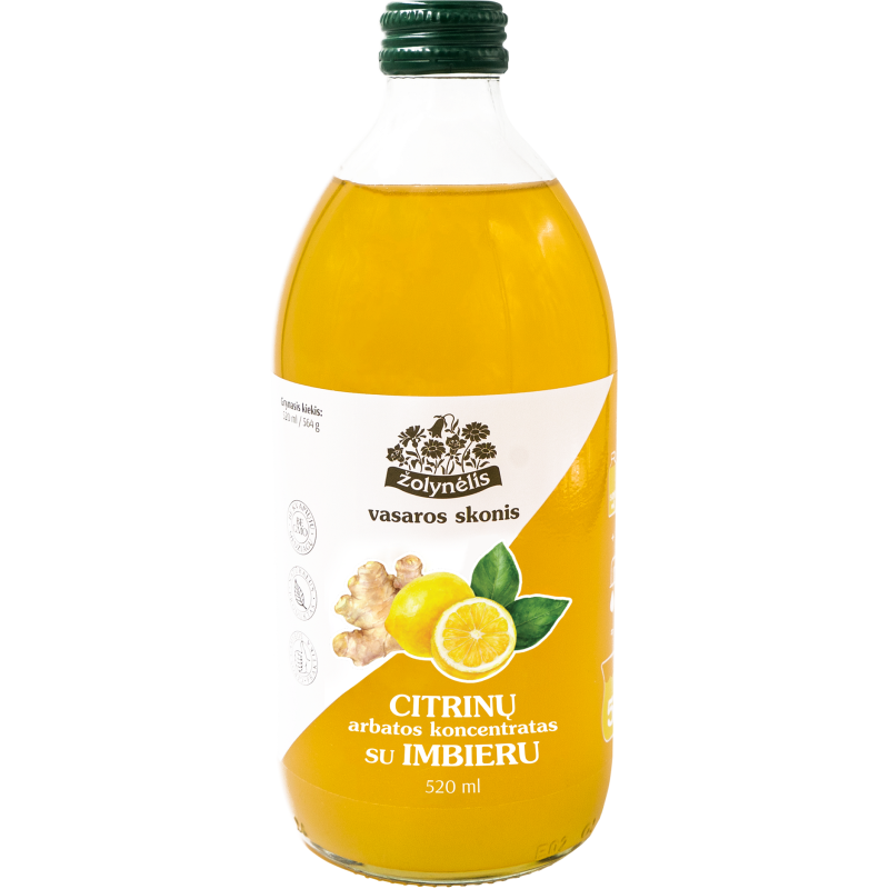 Citrinų arbatos koncentratas 50%, cukrus, vanduo, imbieras 1,5%.