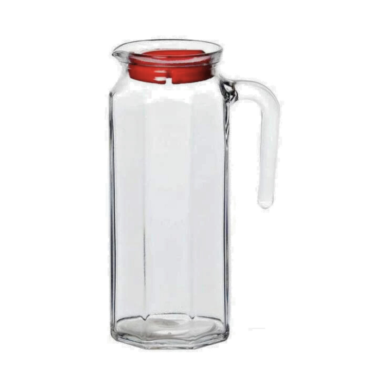 Klasikinio ir praktiško dizaino stiklinis ąsotis, skirtas kasdieniam gėrimų patiekimui. Skaidrus stiklas leidžia matyti turinį, o ryškus dangtelis suteikia modernų akcentą ir padeda apsaugoti gėrimus nuo dulkių ar vabzdžių. Puikiai tinka tiek namams, tiek terasai ar šventėms.