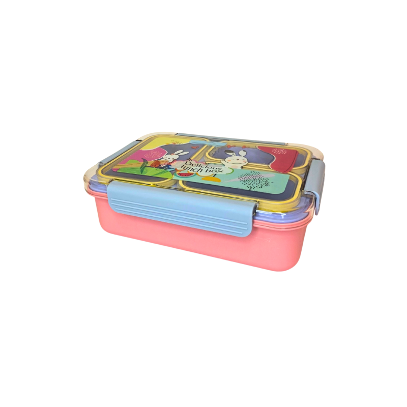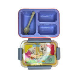Linksmo dizaino vaikiška pietų dėžutė su trijų skyrių vidumi – puikus pasirinkimas pietums ar užkandžiams darželyje, mokykloje ar išvykose. Dėžutė pagaminta iš tvirto plastiko, turi sandarų dangtelį su užsegimais iš šonų, kad maistas neišbyrėtų. Komplekte taip pat yra šaukštelis.