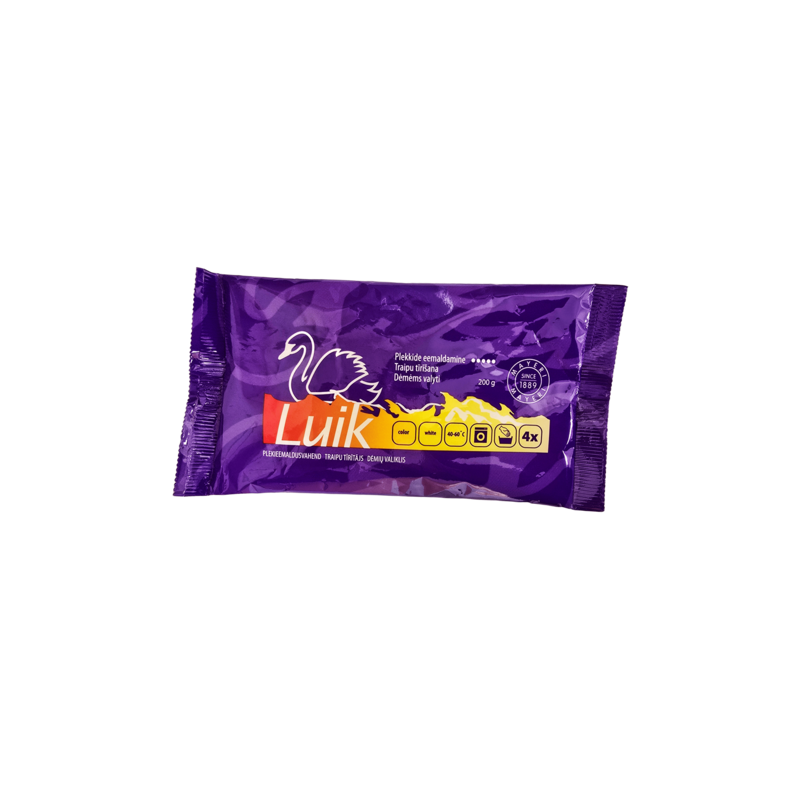 Dėmių valiklis LUIK. Efektyviai šalina kavos, uogų, vyno ir kitas dėmes iš įvairių pluoštų audinių.