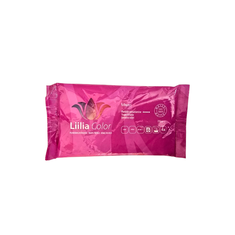 Spalvotų audinių dėmių valiklis LIILIA COLOR. Efektyviai šalina kavos, uogų, vyno ir kitas dėmes iš spalvotų, įvairių pluoštų audinių. Netinka vilnai ir šilkui.