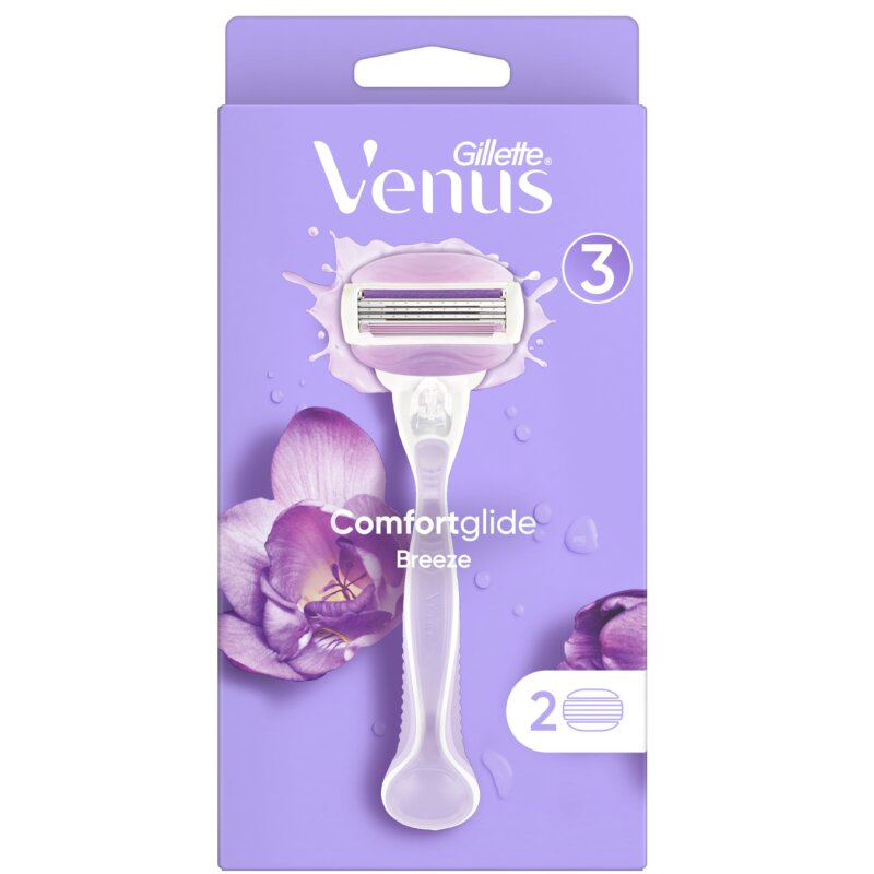 Gillette Venus Comfortglide Breeze skustuvas su keičiamomis galvutėmis – skirtas švelniam, patogiam ir saugiam moterų skutimuisi.