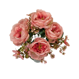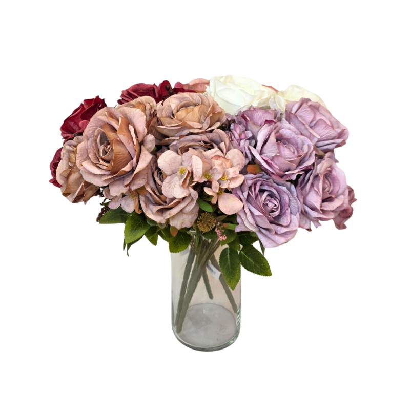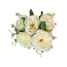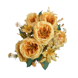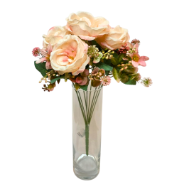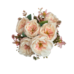 Elegantiška dirbtinių gėlių puokštė. Švelnūs, natūralūs atspalviai ir kruopščiai išdirbtos detalės sukuria itin realistišką vaizdą. Puikiai tinka namų, biuro ar šventinės erdvės dekoravimui.