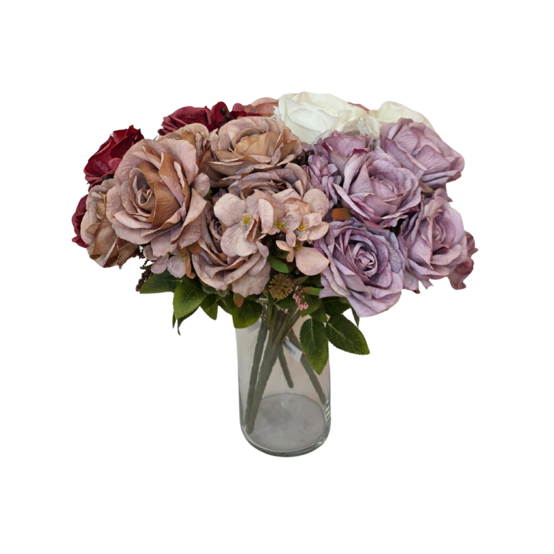Išskirtinio grožio dirbtinių rožių puokštė su švelnių atspalvių žiedais – tai prabangaus ir jaukaus interjero akcentas.