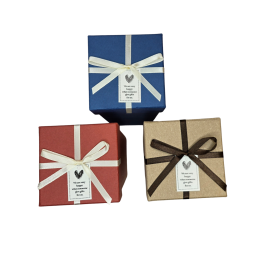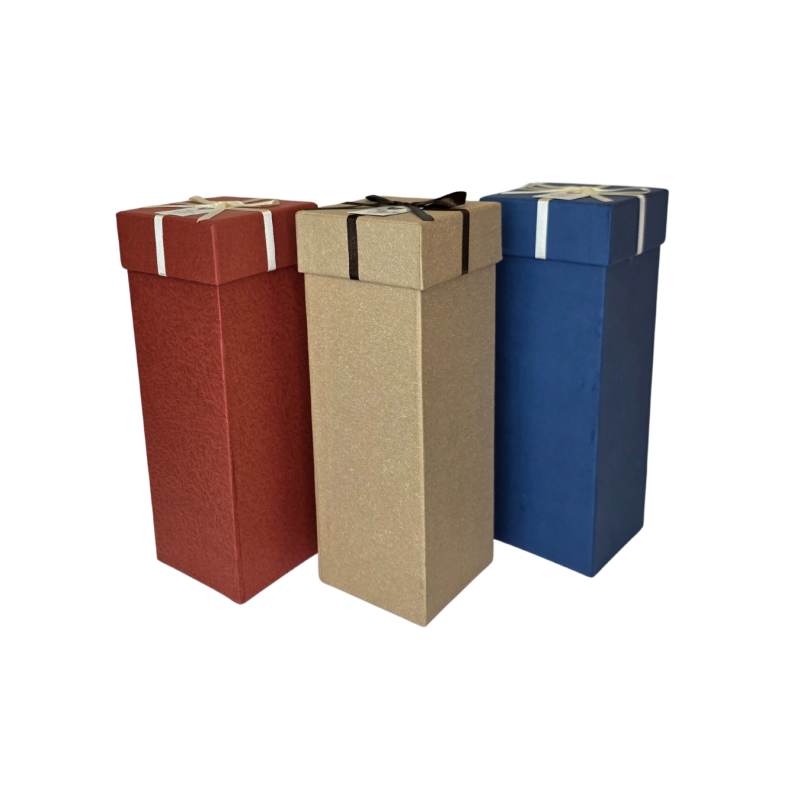 Elegantiška aukšta dovanų dėžutė su kaspinu – tvirto kartono konstrukcija užtikrina patvarumą, o švelniai blizgus paviršius ir dekoratyvinis kaspinas suteikia dėžutei prabangos pojūtį.