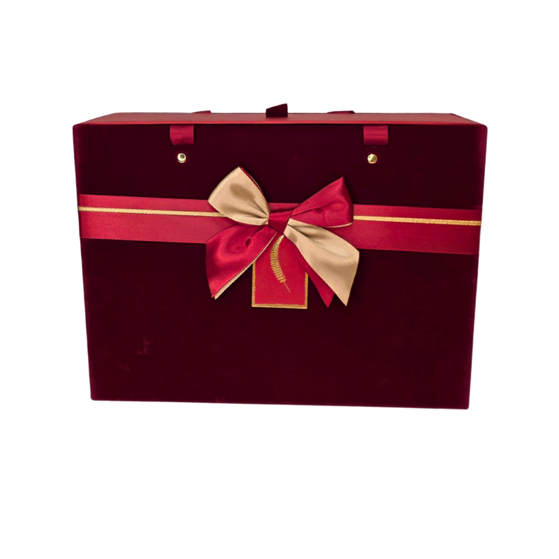 Elegantiška raudonos ir auksinės spalvos dovanų dėžutė – prabangus pasirinkimas ypatingoms progoms. Dėžutė puošta dviejų atspalvių atlasiniu kaspinu, kuris suteikia išskirtinumo ir stiliaus.