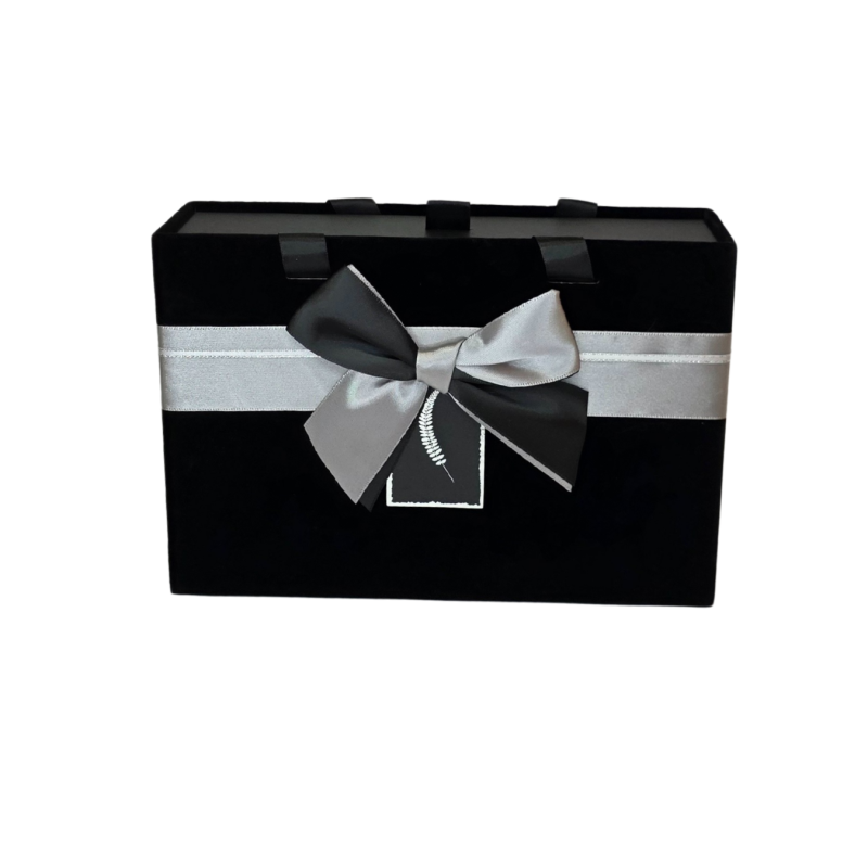 Elegantiška juodos ir sidabrinės spalvos dovanų dėžutė – prabangus pasirinkimas ypatingoms progoms. Dėžutė puošta dviejų atspalvių atlasiniu kaspinu, kuris suteikia išskirtinumo ir stiliaus.