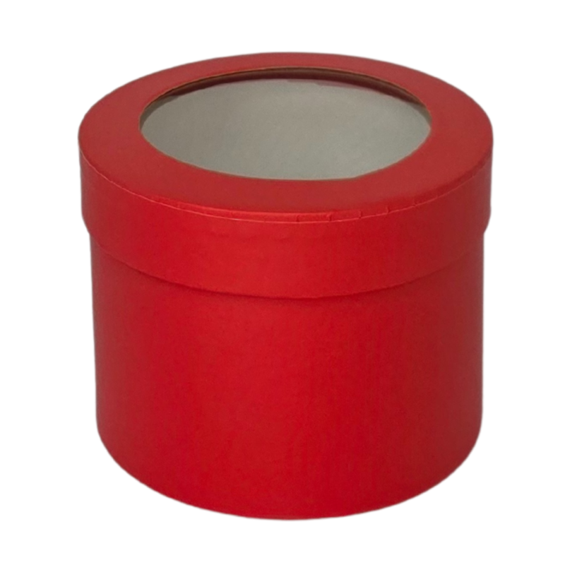 Stilinga apvali dovanų dėžutė su permatomu viršumi – puikus pasirinkimas dovanoms, suvenyrams ar rankų darbo gaminiams pakuoti. Ryški raudona spalva suteikia šventiškumo, o plastikinis langelis leidžia matyti viduje esančią dovaną. Dėžutė tvirta, lengvai atidaroma ir daugkartinio naudojimo.