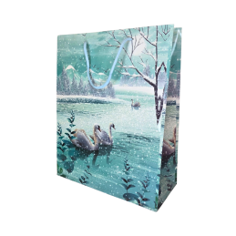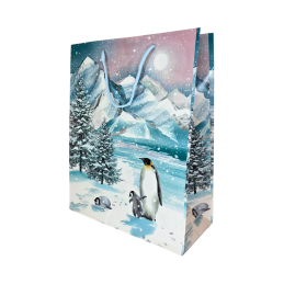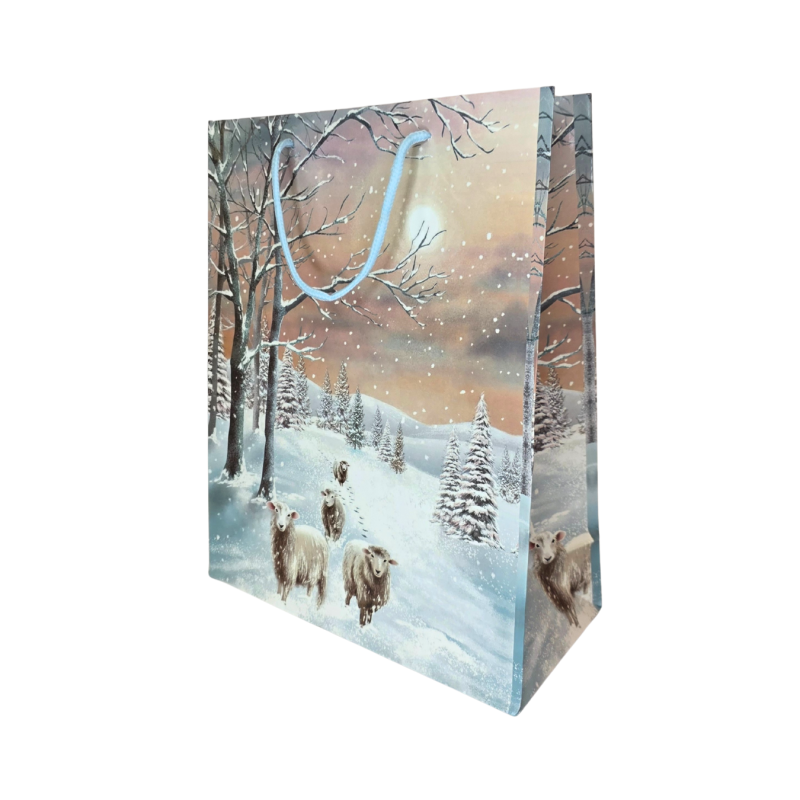 Išskirtinio grožio dovanų maišeliai su žiemos peizažais – jaukūs, šventiški ir sukurti tam, kad kiekviena dovana atrodytų ypatingai. Kiekvienas dizainas tarsi atvirukas iš žiemos pasakos: avytės snieguotu taku, grakščios gulbės ramiame ežere, pingvinų šeimyna ledo apsuptyje ar miško elniai tarp užpustytų medžių. Šie maišeliai spinduliuoja ramybe, žiemos magija ir natūraliu grožiu. Puikiai tinka Kalėdoms, žiemos šventėms, gimtadieniams ar bet kuriai progai, kuriai norisi suteikti ypatingo jaukumo. Pagaminti iš tvirto popieriaus su dekoratyvinėmis virvelinėmis rankenomis.