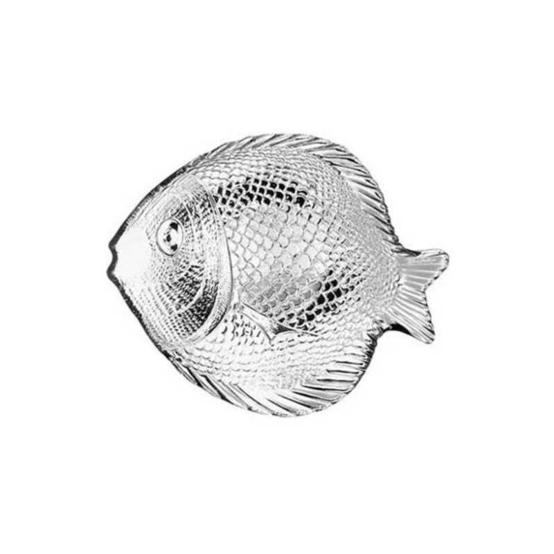 Dekoratyvi skaidraus stiklo lėkštė žuvies formos – stilingas pasirinkimas patiekti užkandžius, žuvies patiekalus ar jūros gėrybes. Išraiškingas reljefas suteikia stalui išskirtinumo.