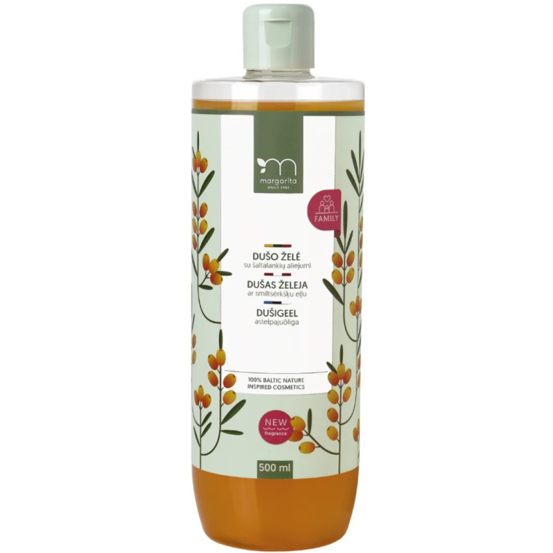 Malonaus aromato dušo želė su šaltalankių aliejumi švelniai prausia odą bei palaiko natūralią drėgmę. Šaltalankių aliejus – natūralus vitaminų C, E, P ir karotino šaltinis, kuris maitina, puoselėja ir gražina odą. Oda tampa švelnesnė, nereikalauja papildomo drėkinimo. Tinka visų tipų odai naudoti kasdien. Dermatologų patikrinta.