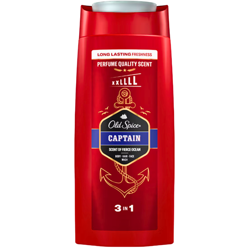 Old Spice Captain 3-in-1 Body, Hair & Face Wash – energizuojantis 3 viename prausiklis vyrams, skirtas kūnui, plaukams ir veidui.