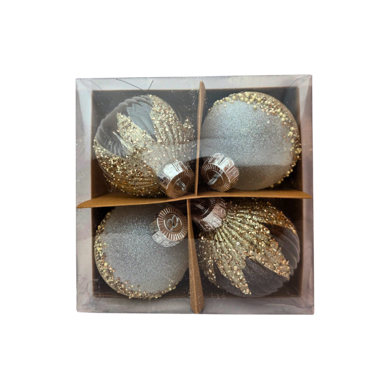Kalėdiniai eglutės žaisliukai – prabangūs, švytintys ir itin stilingi. Sidabriniai ir auksiniai atspalviai, blizgučių bei karoliukų dekoracijos suteikia eglutei spindesio ir šventinės prabangos. Šie žaisliukai puikiai dera tiek prie tradicinės, tiek prie modernios kalėdinės puošybos, o jų šviesus tonas sukuria harmoningą ir išskirtinį šventinį vaizdą. Supakuoti elegantiškoje dėžutėje – puiki dovana ar dekoratyvinis akcentas.