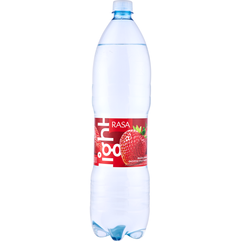 Natūralus mineralinis vanduo „Rasa Light“ iš Druskininkų, anglies dioksidas, natūrali braškių kvapioji medžiaga.