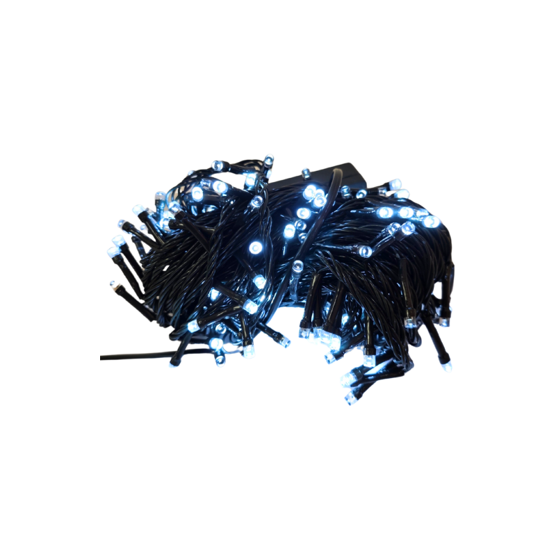 Šaltai balta LED girlianda – idealus pasirinkimas norint sukurti modernų, žiemos gaiva dvelkiantį apšvietimą. Ryškios, švarios baltos šviesos lemputės suteikia dekoracijoms elegancijos ir išskirtinio spindesio, todėl ji puikiai tinka eglutei, langams, sienoms, terasoms ar kitoms vidaus ir lauko erdvėms puošti. Lemputės įkomponuotos į tvirtą tamsų laidą, kuris lengvai paslepiamas tarp šakų ar dekoracijų. LED technologija užtikrina ilgaamžiškumą ir ekonomišką energijos vartojimą viso šventinio sezono metu.