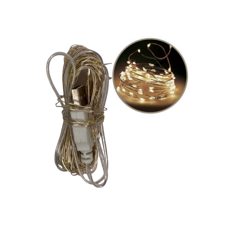 Ilga ir itin universali USB LED girlianda su net 100 šiltai baltų švieselių — puikus pasirinkimas tiek kasdieniam namų jaukumui, tiek šventinėms dekoracijoms. Plonas, lankstus vielinis laidas leidžia lengvai formuoti girliandą ir pritaikyti ją įvairiems paviršiams: lentynoms, lovos atbrailoms, stiklainiams, veidrodžiams, augalams ar fotosesijų dekorui.