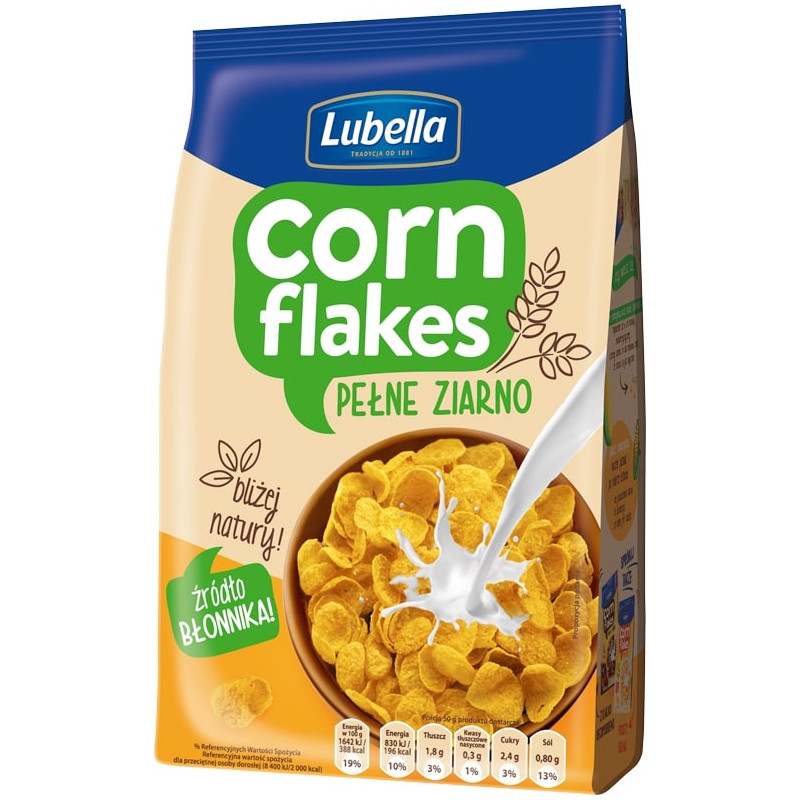 Visadalių grūdų Kukurūzų miltai 59%,kukurūzų miltai, MIEŽIŲ salyklo ekstraktas, cukrus, druska, KVIEČIŲ selenos, dažikliai: karotenai. paprastoji karamelė, antioksidantas tokoferolių koncentruotas ekstraktas Produkto sudėtyje gali būti PIENO