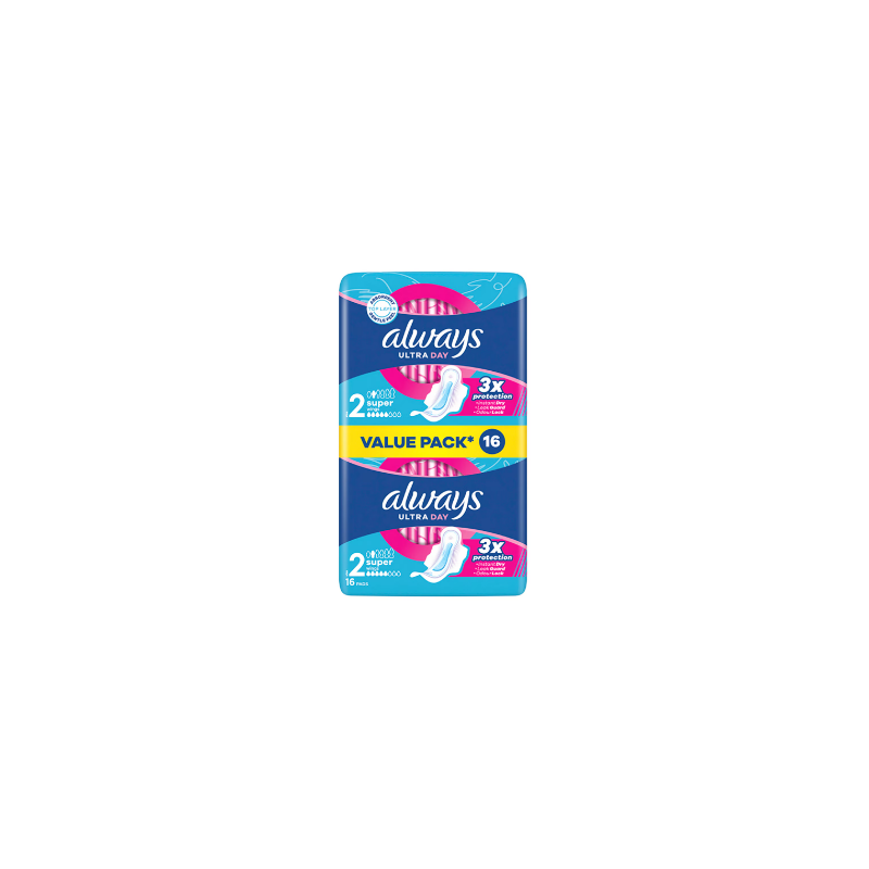 „Always Ultra Super Plus“ (2 dydis) paketai yra puikus pasirinkimas toms, kurioms reikia patikimos ir sustiprintos apsaugos vidutiniškai gausiomis dienomis, išlaikant komfortą ir diskretiškumą.