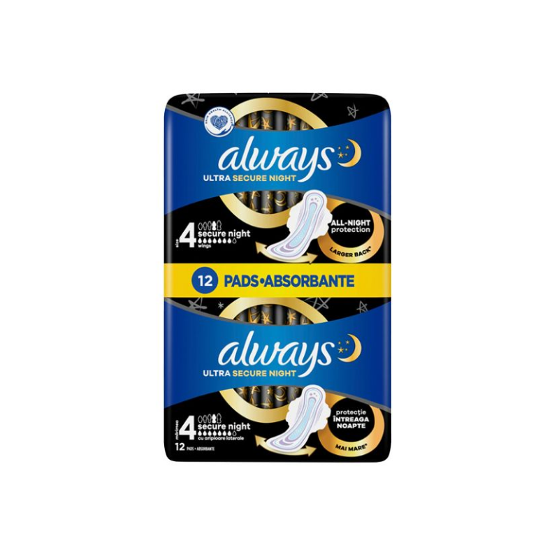 „ALWAYS Ultra Secure Night“ yra specialiai sukurti užtikrinti maksimalią apsaugą ir ramų miegą gausių menstruacijų naktimis. Šie paketai yra ilgiausi ir plačiausi „Always Ultra“ asortimente (5 dydis), sukurti taip, kad suteiktų iki 100 % apsaugą nuo pratekėjimo per visą naktį, net ir daug judant.