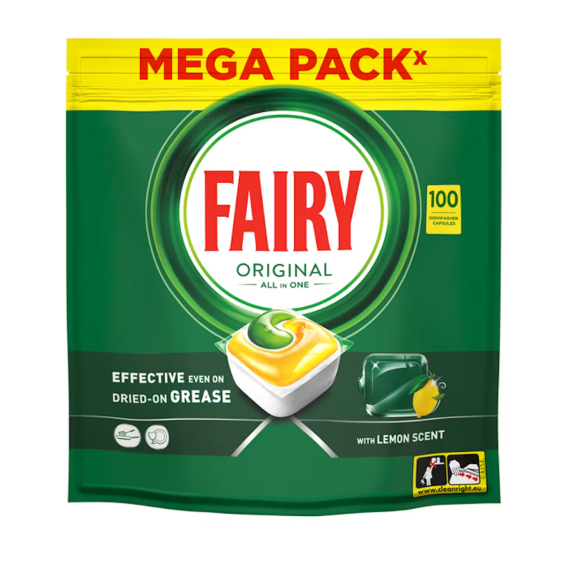 Fairy Original All in One indaplovių kapsulės veiksmingai pašalina net pridžiūvusius riebalus, užtikrina puikią indų švarą ir malonų citrinų aromatą, o patogi „viskas viename“ formulė tinka kasdieniam naudojimui be papildomo nuskalavimo.