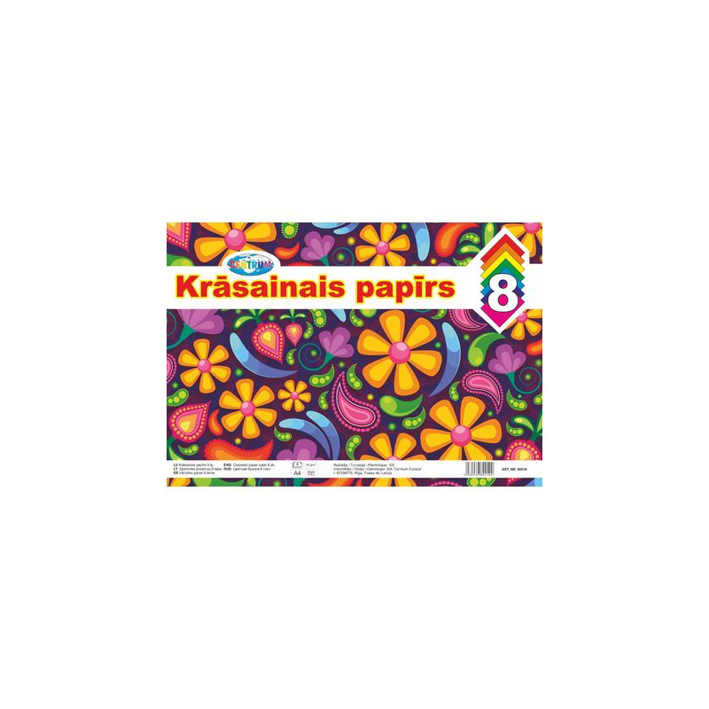 Spalvotas popierius A4, 8lapų, 80g/m².