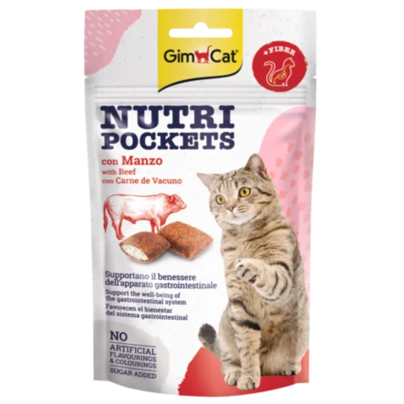 GIMCAT NUTRI POCKETS – traškios pagalvėlės su gardžiu įdaru. Papildomas ėdalas katėms. Pagalvėlių sudėtyje yra aromatingas salyklas ir natūralios celiuliozės skaidulos, padedantys palaikyti virškinamojo trakto gerovę.