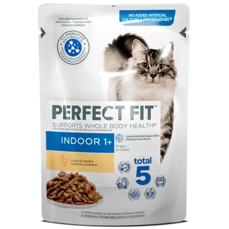 PRITAIKYTA SUAUGUSIOMS KATĖMS, GYVENANČIOMS NAMUOSE Be unikalios „Perfect Fit Total 5“ formulės, kuri būdinga visiems „Perfect Fit“ gaminiams, mūsų „Indoor 1+“ produktas sveikatai teikia papildomos naudos, atitinkančios specifinius kambarinių kačių poreikius. Taip visada būsite tikri, kad duodate savo katei maisto, kurio jai reikia.