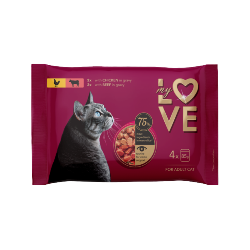 Kačių ėdalas MY LOVE su jautiena ir vištiena padaže