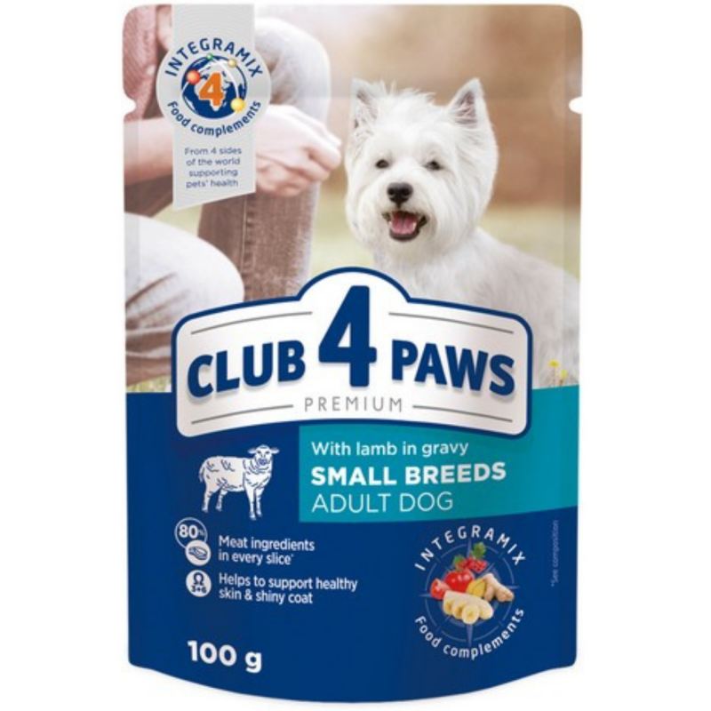 CLUB 4 PAWS Premium visavertis konservuotas ėdalas suaugusiems, mažos veislės šunims su ėriena padaže