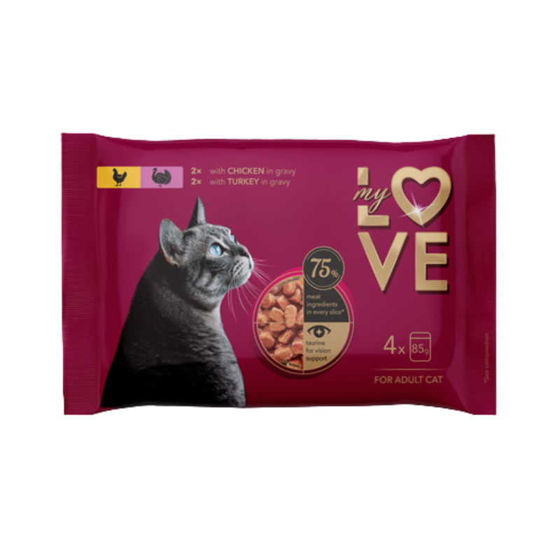 My Love Visavertis konservuotas ėdalas suaugusioms katėms su vištiena ir kalakutiena padaže