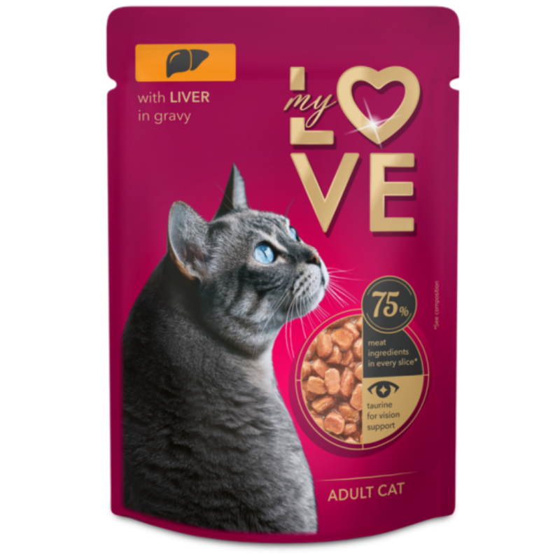 MY LOVE VISAVERTIS KONSERVUOTAS ĖDALAS SUAUGUSIOMS KATĖMS SU KEPENĖLEMIS PADAŽĖ