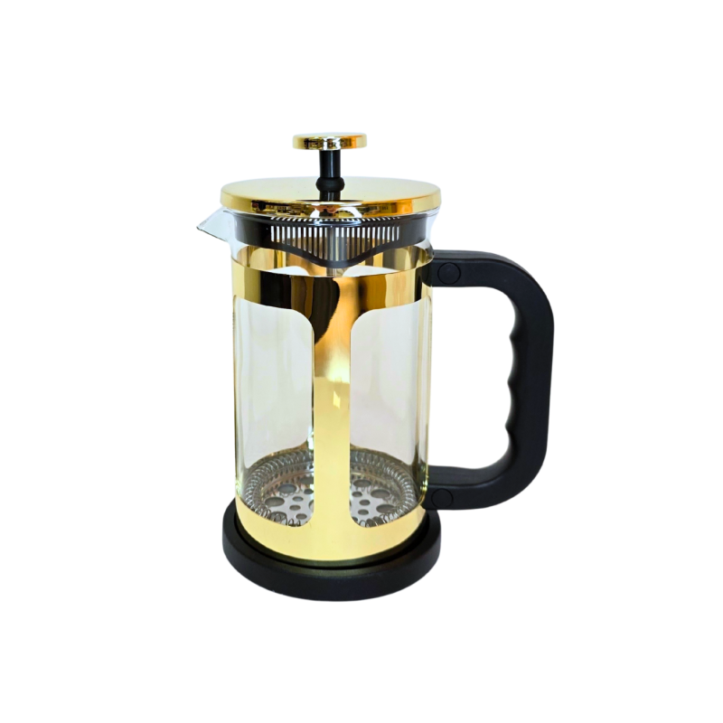 Stilingas kavos ir arbatos presas su auksinės spalvos metalo apdaila – puikus pasirinkimas elegantiškam ir praktiškam gėrimo ruošimui. Pagamintas iš karščiui atsparaus stiklo, nerūdijančio plieno ir tvirto plastiko, šis presas ne tik atrodo prabangiai, bet ir yra patvarus bei patogus naudoti. Nerūdijančio plieno filtras leidžia mėgautis sodriu ir kvapniu kavos ar arbatos skoniu.
