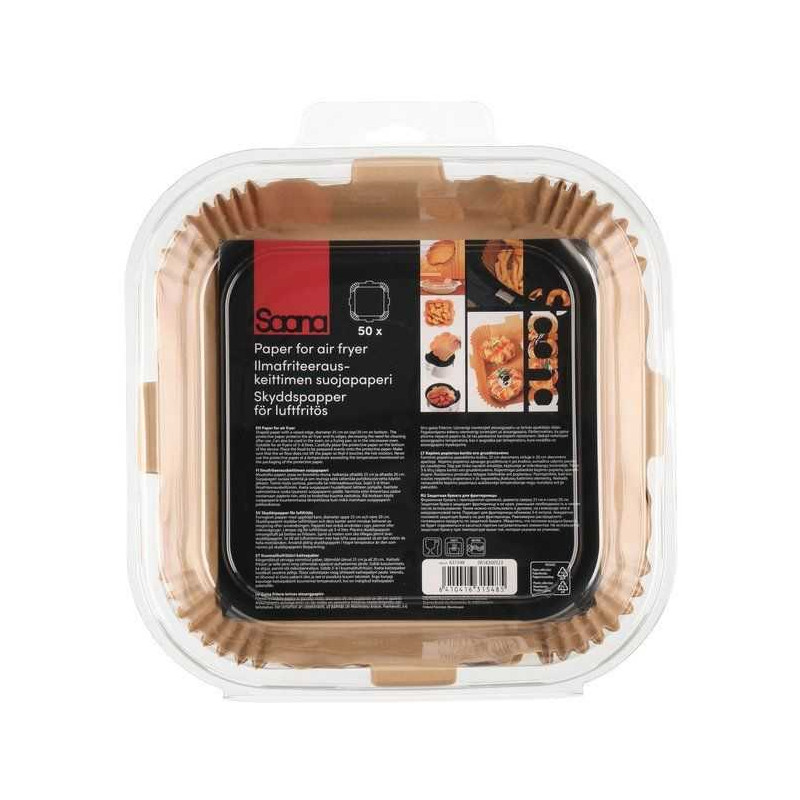 Vienkartiniai aukštos kokybės kvadratiniai kepimo popieriaus įdėklai skirti oro gruzdintuvėms. Dėl formos, kurios viršutinė dalis yra platesnė (25 cm), o dugnas – siauresnis (20 cm), jie puikiai prisitaiko prie daugumos standartinių gruzdintuvės krepšelių. Įdėklai apsaugo krepšelį nuo riebalų, trupinių ir prikepusių likučių, todėl valymas tampa daug lengvesnis. Pagaminti iš karščiui atsparaus, nelimpančio, maistui saugaus popieriaus.
