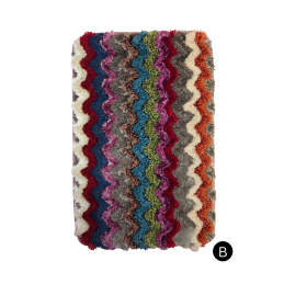 Ryškūs, minkšti ir jaukūs kilimėliai su spalvingu zigzago raštu – puikus pasirinkimas namams, voniai, koridoriui ar vaikų kambariui. Storos, purios tekstūros paviršius suteikia malonų pojūtį po kojomis, gerai sugeria drėgmę ir greitai džiūsta. Kilimėlis turi neslystantį pagrindą, todėl stabiliai laikosi ant grindų ir yra saugus naudoti kasdien.