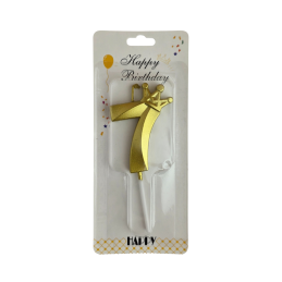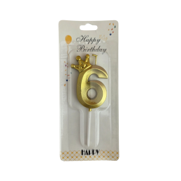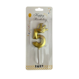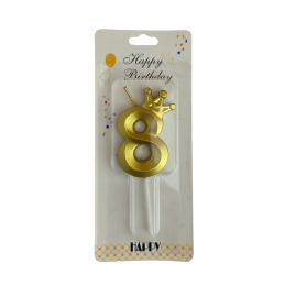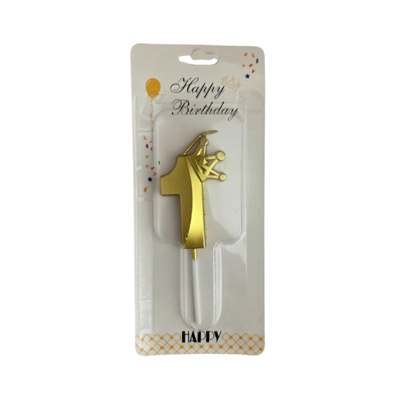Auksinės spalvos gimtadienio žvakutė su karūnėlės dekoracija – stilingas šventinio torto akcentas. Skaičiaus formos dizainas suteikia elegancijos ir žaismingumo, o tvirta plastikinė lazdelė leidžia lengvai įstatyti žvakutę į tortą.
