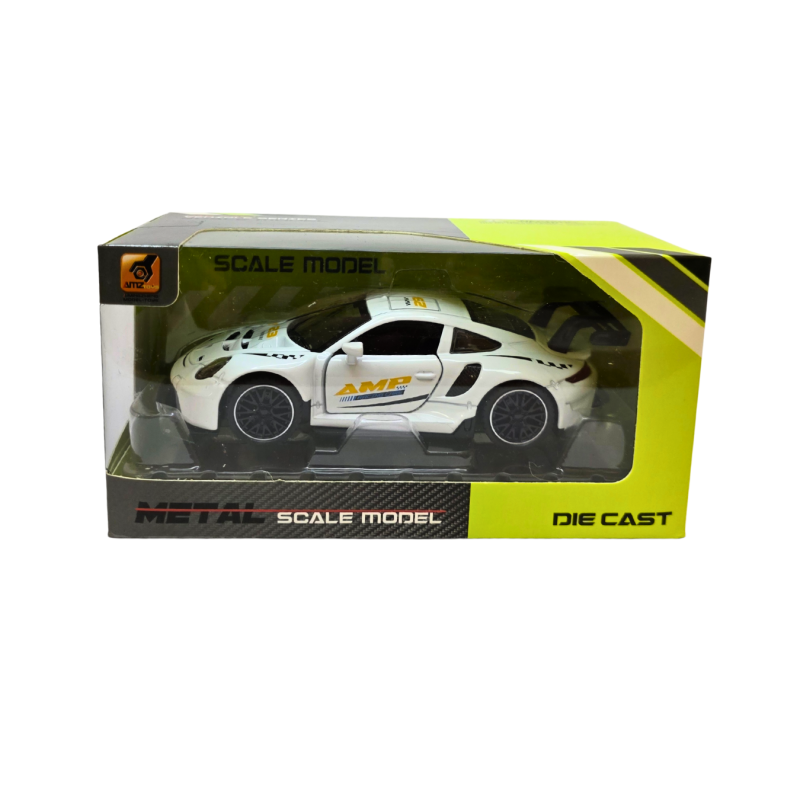 Stilingas metalinis sportinis automobilis su tikroviškomis detalėmis ir aukštos kokybės apdaila.