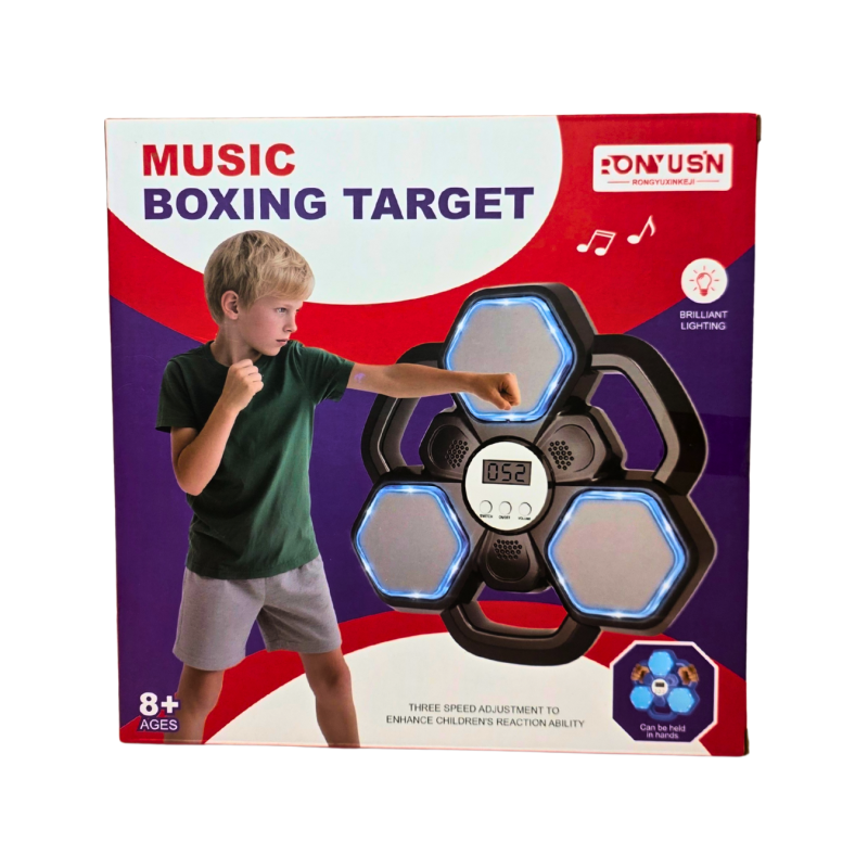 Interaktyvus muzikinis bokso taikinys – puikus pasirinkimas vaikams, norintiems lavinti reakciją, judesių koordinaciją ir greitį!