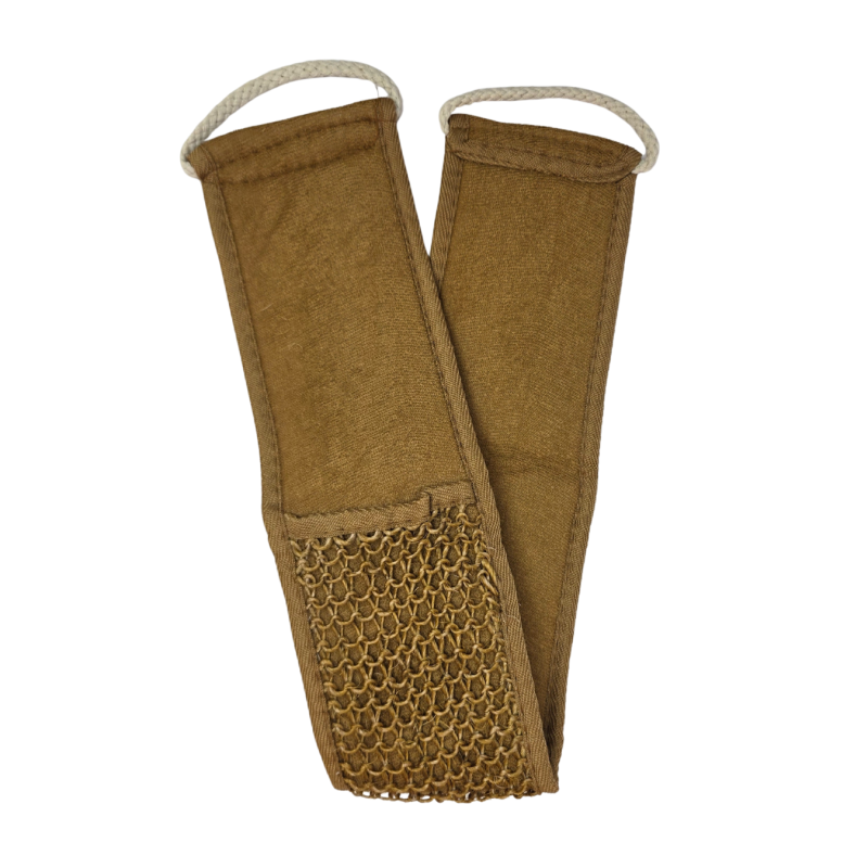 Nugaros šveitimo diržas/plaušinė – puikus pagalbininkas norint pasiekti sunkiai prieinamas vietas ir pasirūpinti odos švara bei švelnumu. Tvirtos rankenėlės abiejuose galuose leidžia lengvai naudoti diržą duše ar pirtyje.