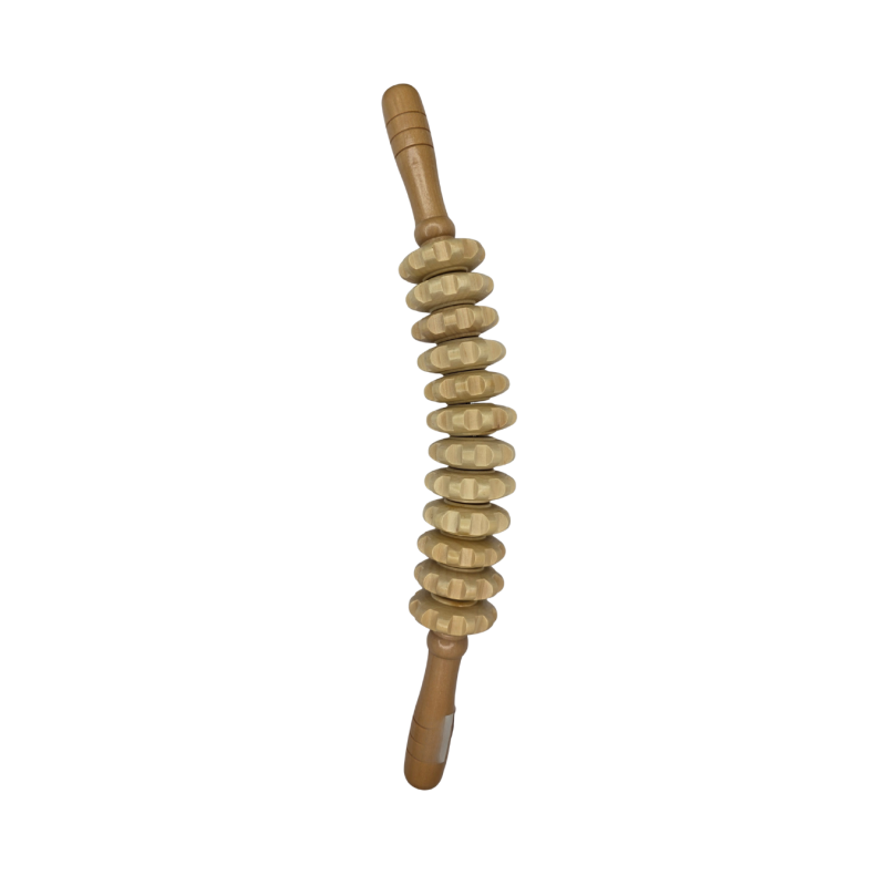 Tvirtas ir patogus medinis masažo volelis su dantytomis besisukančiomis galvutėmis, skirtas efektyviam anticeliulitiniam ir raumenų atpalaidavimo masažui. Ergonomiška forma ir patogios rankenos leidžia lengvai pasiekti įvairias kūno vietas – kojas, rankas, nugarą, sėdmenis ar juosmenį.