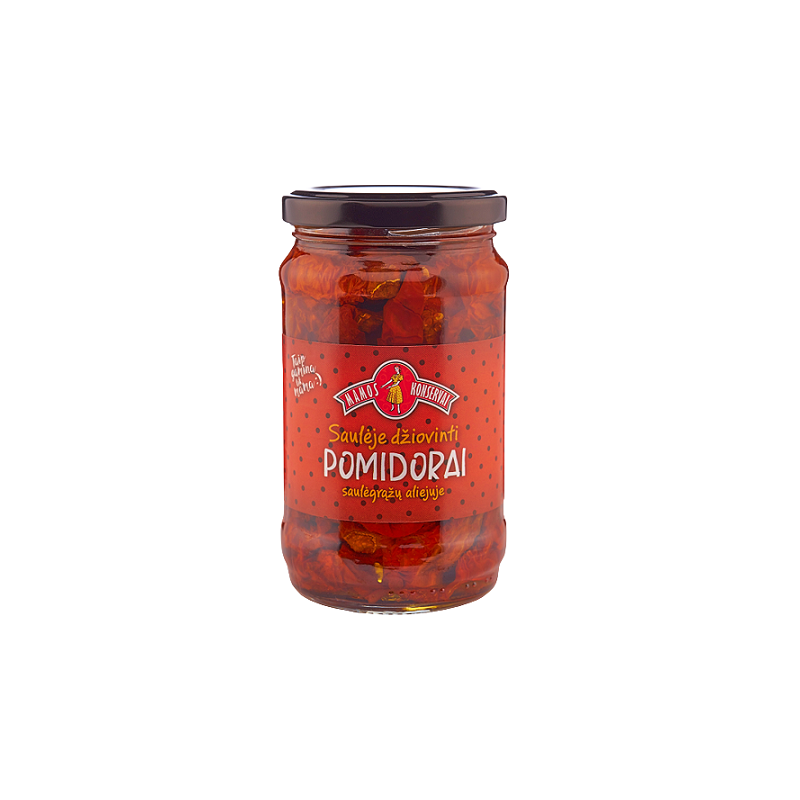 SUDEDAMOSIOS DALYS: saulėje džiovinti pomidorai (64%), saulėgrąžų aliejus, druska, česnakai, rūgštingumą reguliuojančios medžiagos: acto rūgštis, citrinų rūgštis, antioksidantas askorbo rūgštis, konservantas natrio metabisulfitas