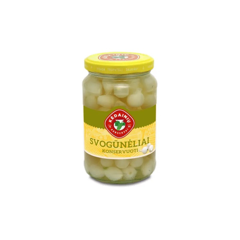 SUDEDAMOSIOS DALYS: Svogūnėliai (57,6%), vanduo, cukrus, actas, druska, kietiklis - kalcio chloridas, rūgštingumą reguliuojanti medžiaga - citrinų rūgštis, askorbo rūgštis, antioksidantas - NATRIO METABISULFITAS.