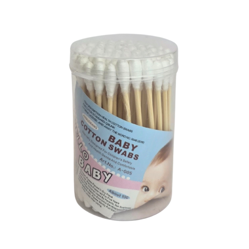 Švelnūs ir saugūs vatos pagaliukai, specialiai sukurti kūdikių priežiūrai. Minkšti vatos galiukai švelniai valo ir nepažeidžia jautrios kūdikio odos. Tinka kasdienei higienai – ausyčių, nosytės ar kitų jautrių vietų valymui. Supakuoti patogiame plastikiniame inde, kuris užtikrina švarą ir patogų laikymą.