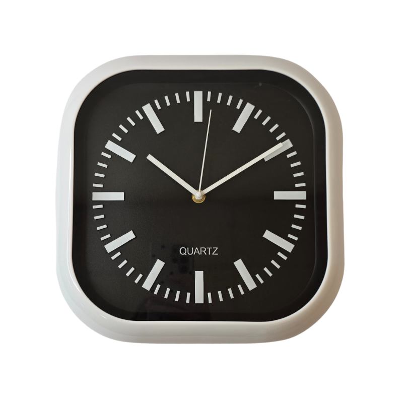Šiuolaikiško dizaino sieninis laikrodis su kontrastingu juodu ciferblatu ir baltu rėmeliu – puikus pasirinkimas moderniam interjerui. Aiškios linijos ir minimalistinės žymės suteikia laikrodžiui tvarkos bei tikslumo įspūdį. Dėl ryškaus kontrasto laiką lengva perskaityti net iš toliau.