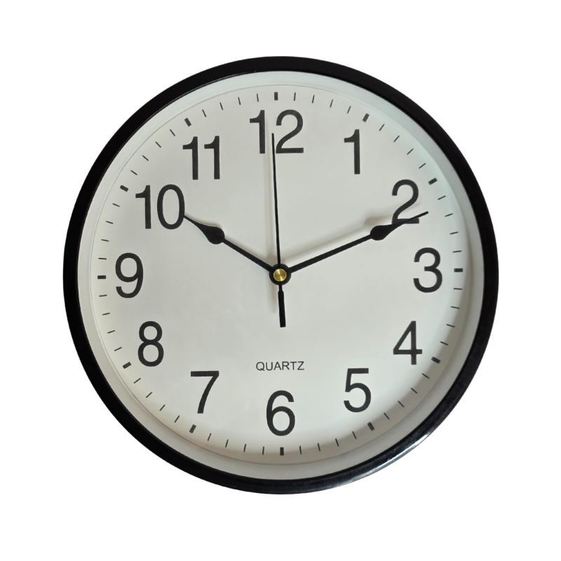 Paprasto ir modernaus dizaino sieninis laikrodis su aiškiais, lengvai įskaitomais skaičiais. Juodas rėmelis ir baltas fonas suteikia klasikinei išvaizdai elegancijos, todėl laikrodis puikiai tinka tiek namų, tiek biuro interjerui.