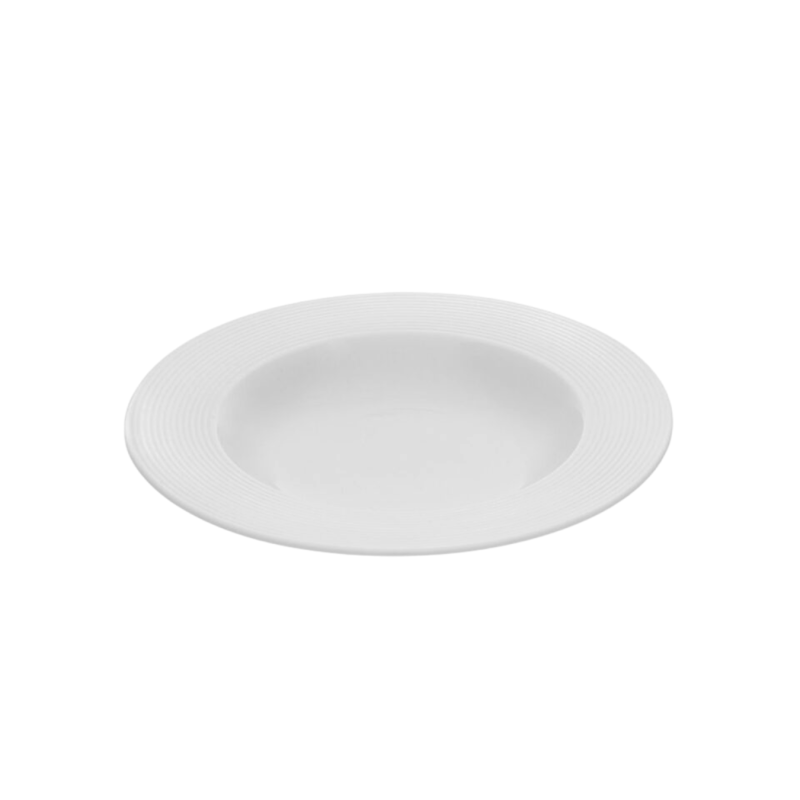 Elegantiška gili lėkštė su subtiliai rievėtu kraštu, tinkama sriuboms, sultiniams, makaronams ar kitiems patiekalams su padažu. Klasikinė balta spalva lengvai derinama su įvairiais stalo indais ir tinka tiek kasdieniam, tiek šventiniam serviravimui.