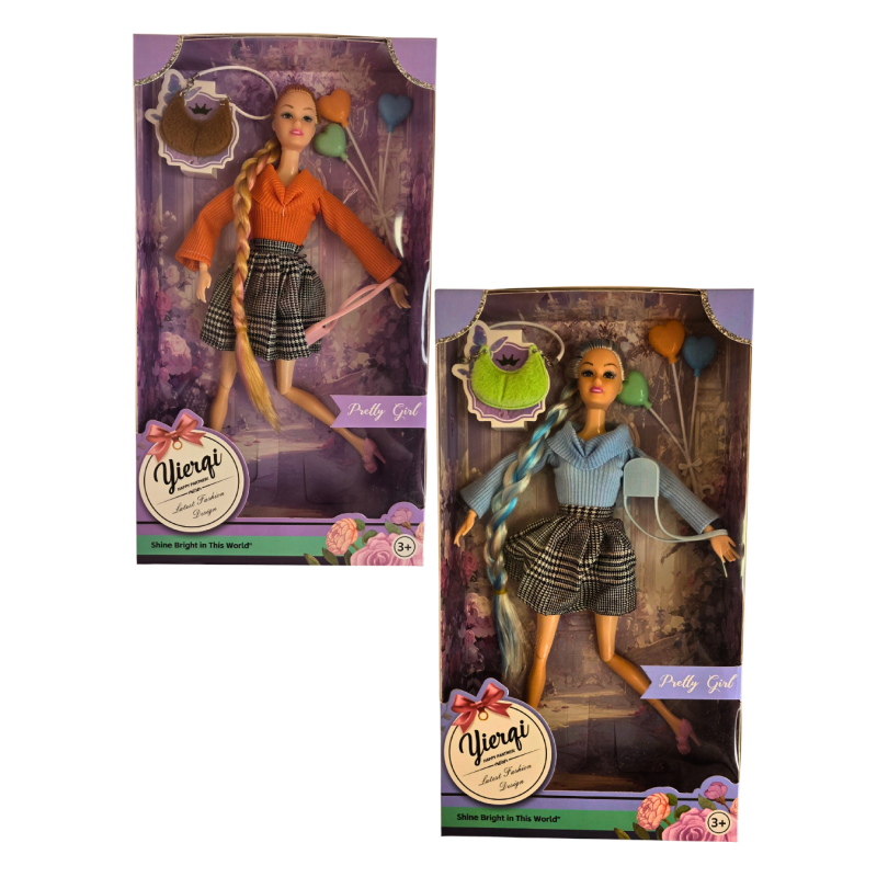 Stilinga lėlė su ypač ilga kasa, madinga apranga ir miela rankine.