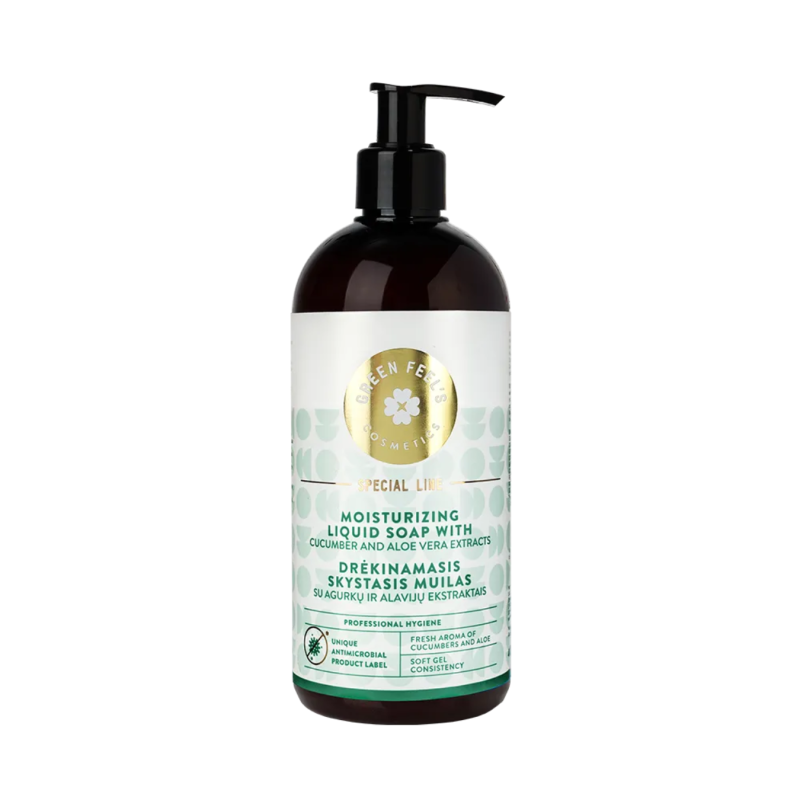 Drėkinamasis skystasis muilas su agurkų ir alavijų ekstraktais itin švelniai nuprausia odos nešvarumus, o sudėtyje esantys natūralūs ekstraktai padeda pasirūpinti rankų odos grožiu. Šie ekstraktai pasižymi intensyviomis drėkinamosiomis savybėmis. Priemonė alsuoja ypatinga gaiva.