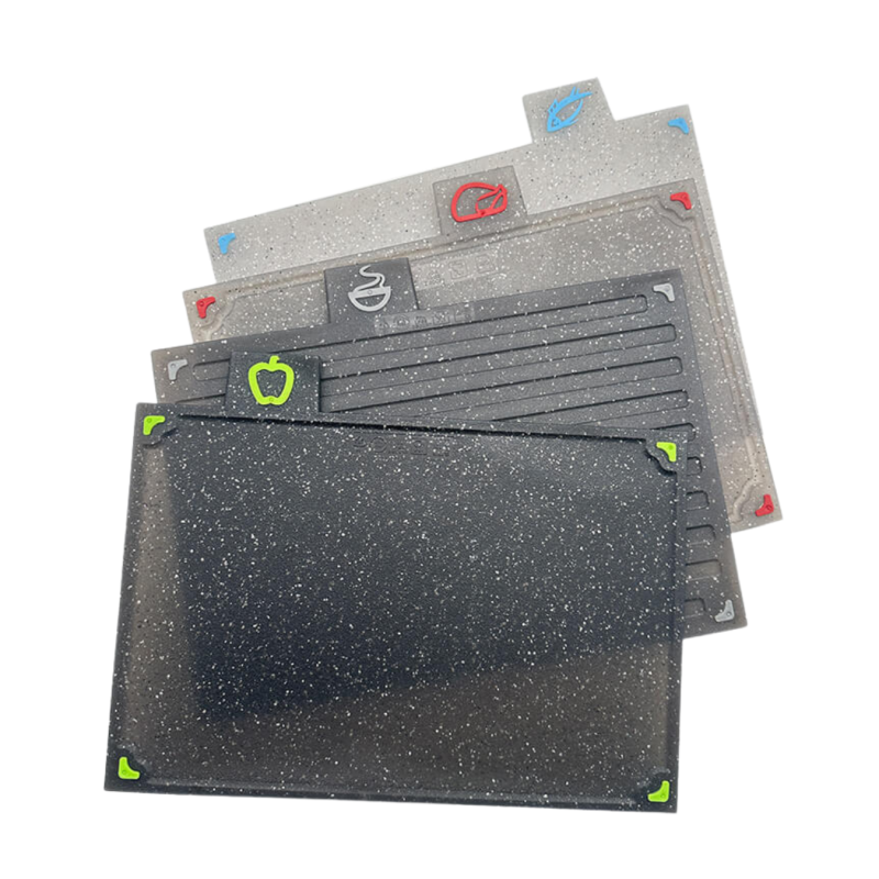 Praktiškas ir patogus pjaustymo lentelių rinkinys, skirtas kasdieniam naudojimui virtuvėje. Rinkinį sudaro keturios skirtingos lentelės ir stabilus laikiklis, padedantis palaikyti tvarką ir higieną.